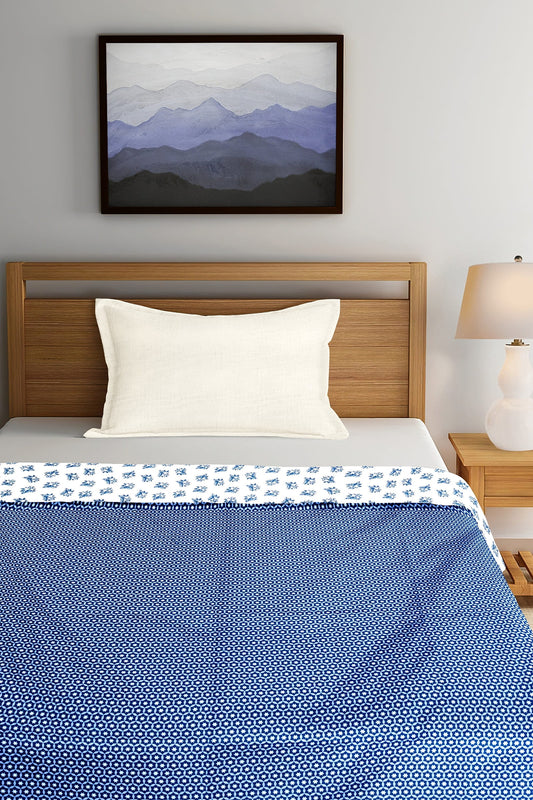 Beneton - White & Blue Designer Satin Stripe Bedsheet