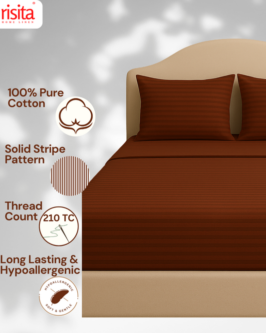 Pure Luxe - 100% Cotton 210 TC Satin Stripe King Size Bedsheet - Brown