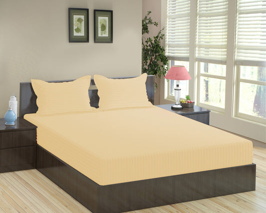 Pure Luxe - 100% Cotton 210 TC Satin Stripe King Size Bedsheet - Beige