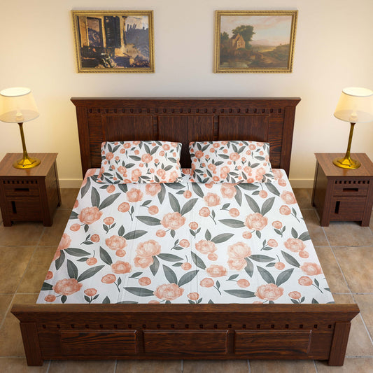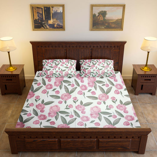 Elegance 100% Cotton King Size Bedsheet - Pink & Green